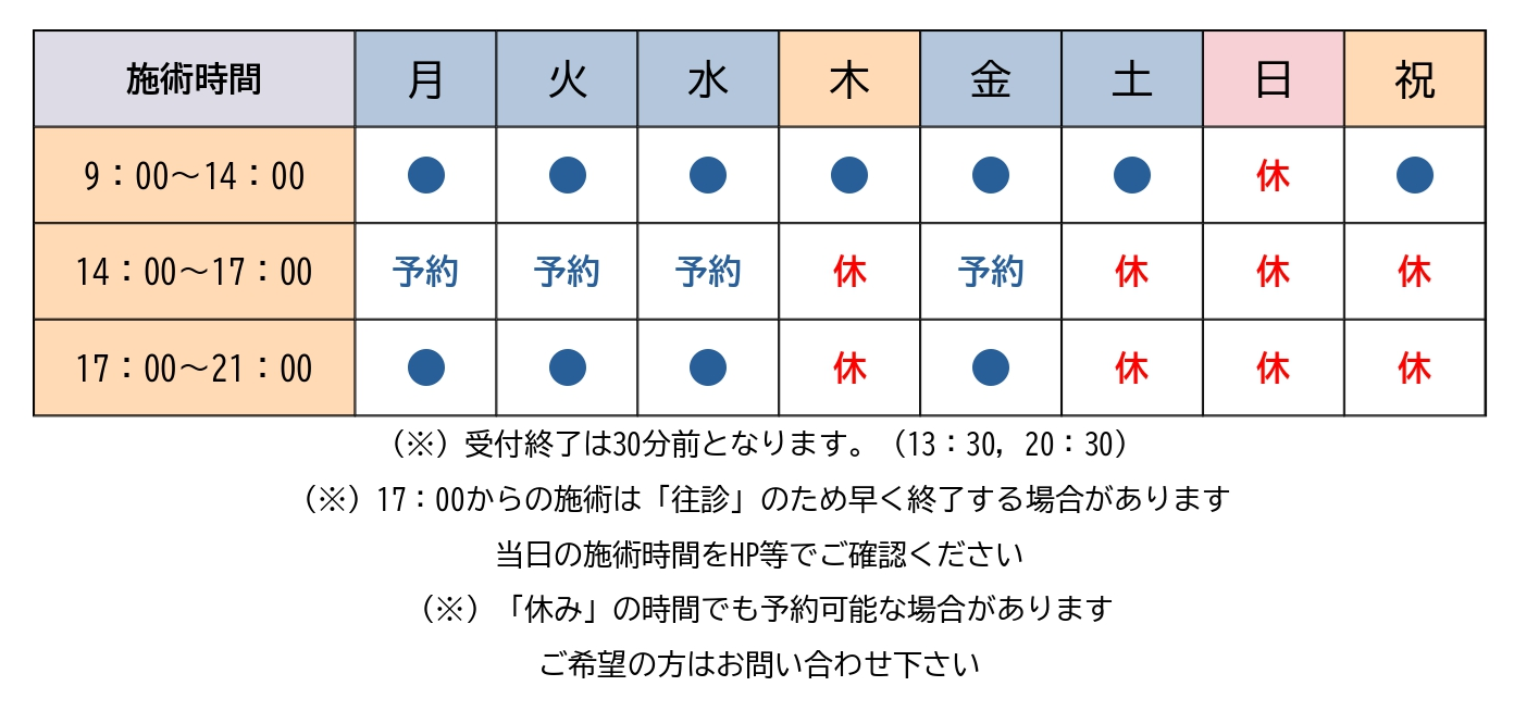 ※施術時間に変更がある場合はこちらでお知らせします