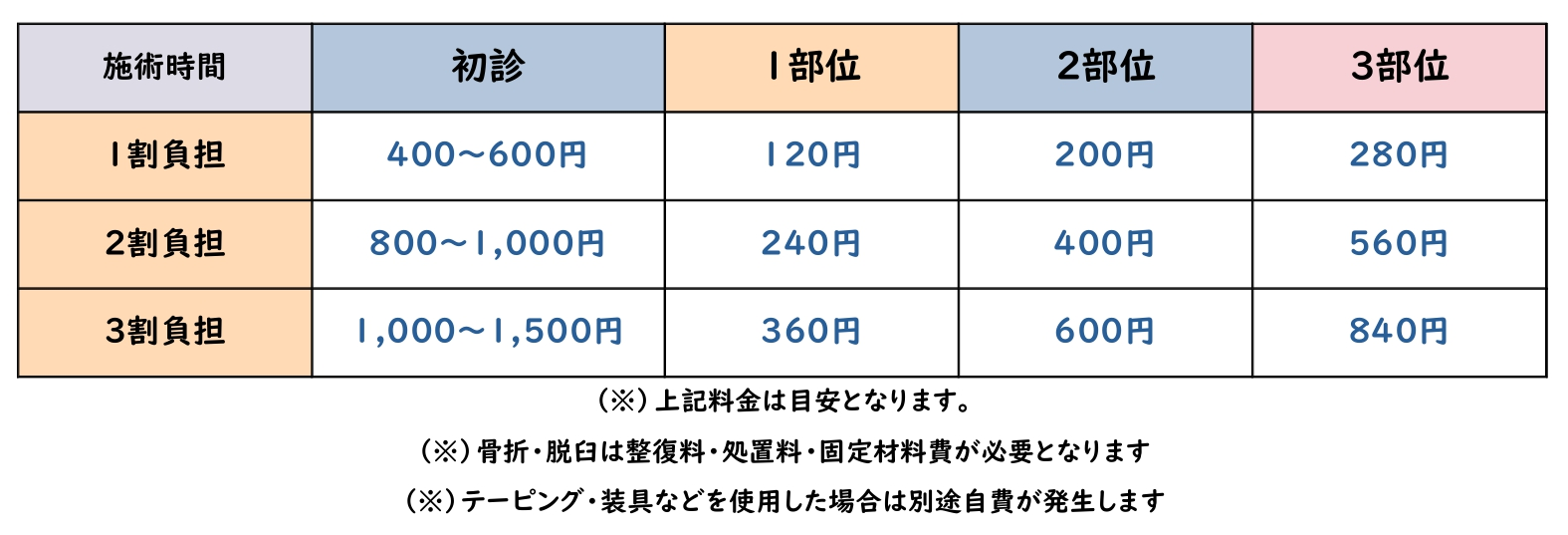【保険施術料金(目安)】